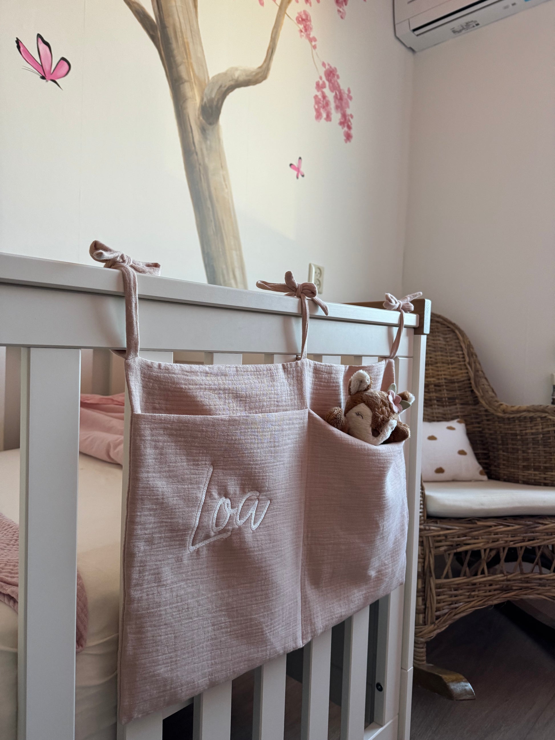 Dankzij de stevige linten bevestig je hem eenvoudig aan de box, het ledikant of de commode.